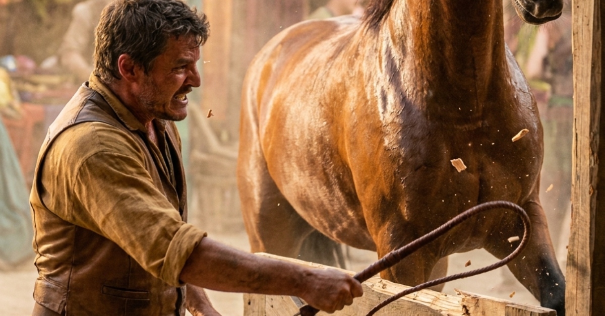 A ló nem hátrált meg; robbanásszerűen reagált. Patái dübörögtek a deszkákon, ahogy a mén felágaskodott, orrlyukai kitágultak, zabla körül habzott a szája. Egy hirtelen, erőteljes mozdulattal egyetlen, pontos rúgást mért, amely a férfit hátralökte a szénába. Miközben a férfi próbált talpra állni, a mén valami egészen váratlant tett: hirtelen megállt, lehajtotta a fejét, és különös, csendes pontossággal a férfi mellkasa felé tolta az ostort.