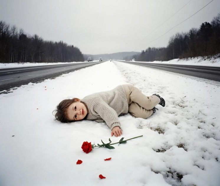 Egy fagyos téli estén, miközben a munkából hazafelé tartottam, a gondolataimat a nap fáradtsága töltötte meg. Az utcák kihaltak voltak, a levegőt pedig csontig hatoló hideg járta át. Éppen egy rövidebb úton akartam átvágni, amikor észrevettem egy apró, mozdulatlan árnyat a jeges járdán. Ahogy közelebb mentem, döbbenten láttam, hogy egy körülbelül ötéves kislány fekszik ott, kezében egyetlen vörös rózsával. A tekintete annyira üres és távoli volt, mintha nem is ehhez a világhoz tartozna. Letérdeltem mellé, és megkérdeztem, mit keres itt. Reszkető ajkairól a „Anyukám itt alszik” mondat hangzott el – és bennem megfagyott a vér.