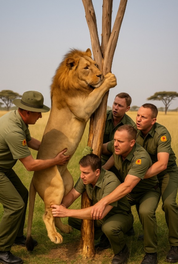A nagy, büszke ragadozó — a oroszlán — mozdulatlanul feküdt a fa alatt. Sörénye összegubancolódott, szeme félig csukva, légzése alig észlelhető. Amikor közelebb léptek, megdermedtek: egy vastag ág a nyakára szorult, mint egy hurok. A bőr szakadt, a vér beszáradt. Látszott — küzdött. Hosszan. És vesztett.